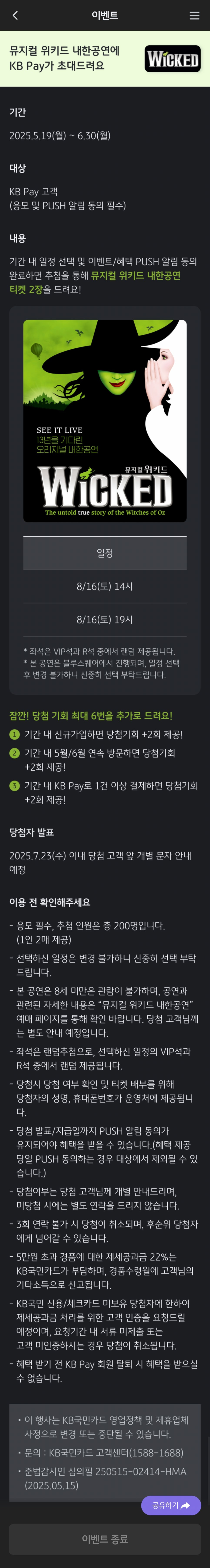 #뮤지컬후기 #위키드R석 #KBPay이벤트 #뮤지컬덕후 #서울가볼만한곳
